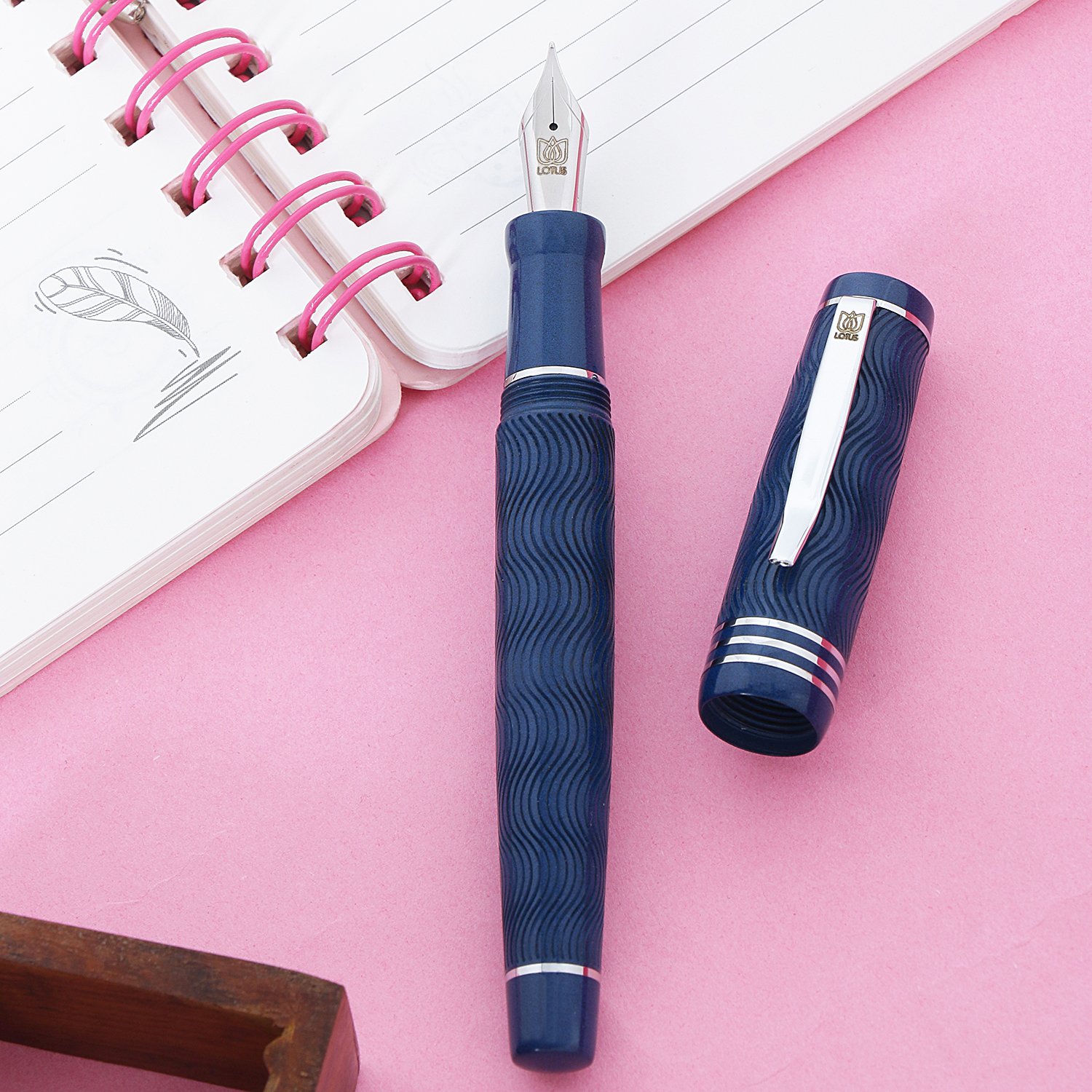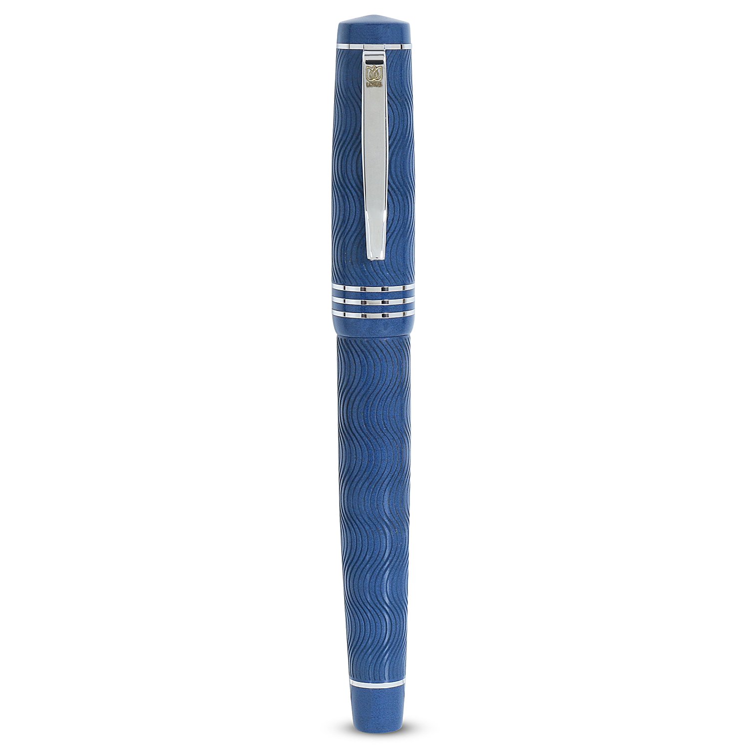 A medium-sized fountain pen featuring wave-like hand carving evokes a sense of elegance and craftsmanship. This exquisite pen combines functionality with artistic flair, making it a standout accessory for any writing enthusiast. The intricate wave patterns, delicately carved by skilled artisans, add a toauch of sophistication and uniqueness to the pen's design. Whether used for everyday writing or special occasions, this fountain pen promises a writing experience that is both pleasurable and refined made in Ebonite to sustain its warmth and elegance through life.